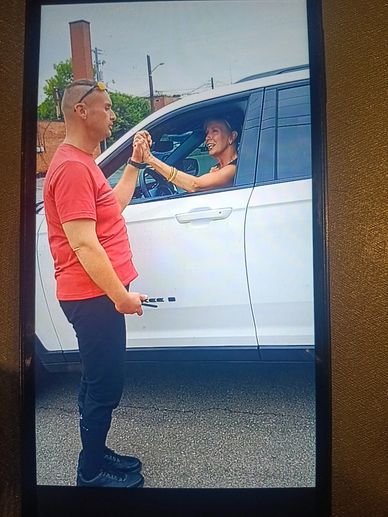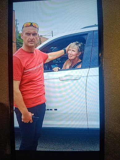 Pic: Chris being nice to Joyce Snyder, Athens, Tennessee, July 26th, 2024.